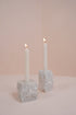 Day Flame in Stone is a sculptural candle holder crafted from white Carrara marble. Its matte, rocky surface is contrasted by one smooth, polished plane, allowing the natural character of the stone to remain visible. Available in two proportions, the piece brings a sense of calm and clarity to the ritual of light.