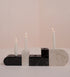 The Metropolitan is a statement candle holder set in Spanish black marble and beige travertine. With its stepped, architectural silhouette, it recalls the rhythm of towers and skylines, transforming natural stone into a modern monument for light