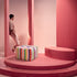 Beams of life pouf evokes a sense of movement, vibrancy, and dynamic energy. The pouf features bold lines, vibrant colors, and klim texture.