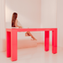 A sleek and smooth surfaced bright orange console that truly brightens up your space