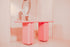 A sleek and smooth surfaced bright pink console that truly brightens up your space