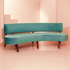A blueberry velvet treat of a couch on a retro pair of wooden legs