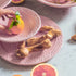 Pottery plates carved with delight, and given a nice pinkish hue to reflect your inner brightness in every table spread