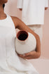 The Quiet One is a pottery vase defined by a textured, matte off-white exterior and a glossy terracotta-glazed interior. Irregular vertical lines shape its surface, giving the piece a tactile, hand-formed presence. Calm on the outside and warm within, it stands as both vessel and sculptural object.