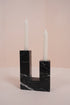 Keystone is a sharp-edged U-shaped candle holder carved from Spanish black marble and beige travertine. Minimal yet architectural, it anchors the flame in sculptural form, transforming light into structure.
