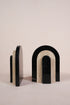 Veil of Stone is a sculptural bookend set crafted from Spanish black marble and beige travertine. Defined by the contrast between dark and light stone, each piece anchors books with quiet strength while functioning as a refined object in its own right. Natural variations in texture and veining make every set unique.